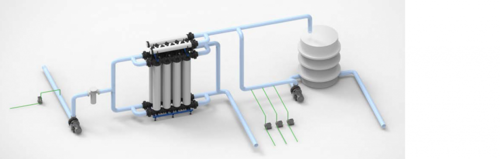 1. Предварительная очистка перед обратным осмосом в качестве надежного барьера от взвешенных частиц. Применяется чаще всего в случае забора исходной воды из поверхностных источников (море, реки, озера и т.д.) и обеспечивает стабильное качество воды перед обратным осмосом без использования химических реагентов. Позволяет работать обратному осмосу с более высоким извлечением пермеата и существенно продлевает срок службы мембран обратного осмоса.