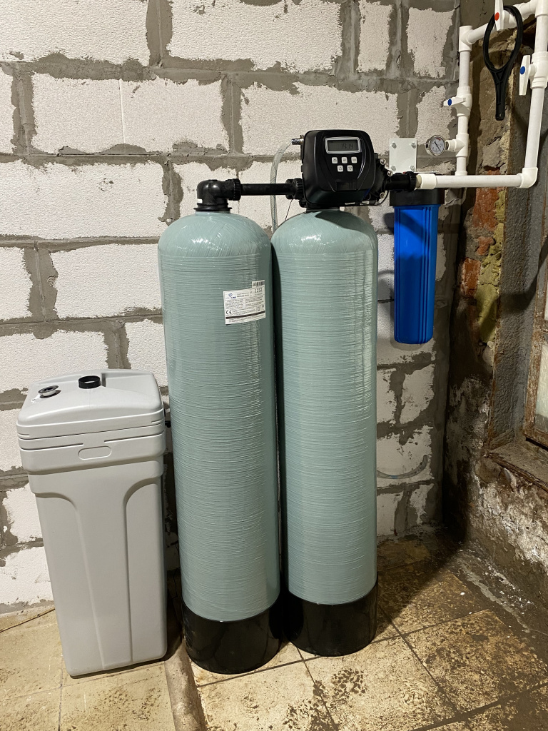 Система умягчения воды состоит из одного или нескольких натрий катионитовых фильтров. Два и более корпуса фильтра устанавливаются при необходимости обеспечения непрерывной работы системы. Например, установки серии TWIN предполагают собой два корпуса фильтра и один общий блок управления. При такой конфигурации осуществляется режим по типу "качели", при котором одна колонна находится в рабочем режиме а вторая в режиме ожидания. При выработке ресурса ионообменной смолы одного фильтра клапан переключает подачу воды через вторую колонну, одновременно переводя первую в режим промывки а затем режим ожидания.Предназначен для переключения режимов работы и промывки без присутствия оператора, периодичность и время начала промывки настраиваются. В бытовых системах на время промывки подача воды не прекращается в соответствии с нормами безопасности, в промышленных системах во время промывки подача воды через фильтр находящийся в режиме промывки останавливается.